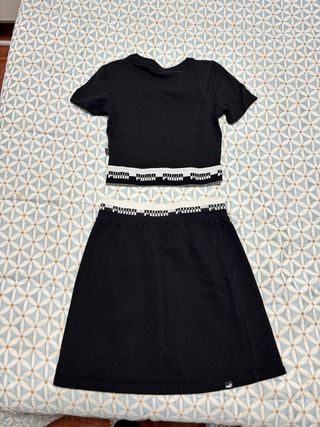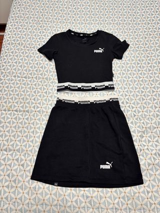 Conjunto deportivo de dos piezas de la marca Puma. - Top corto con logo Puma. - Falda con cinturilla elástica y logo Puma.