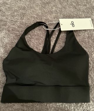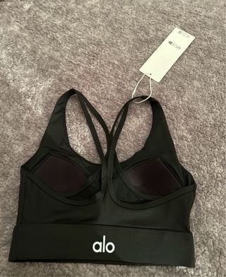 Top deportivo de la marca Alo en color negro. Diseño con tirantes cruzados en la espalda. - Tejido suave y elástico. - Banda ancha en la parte inferior para mayor sujeción.