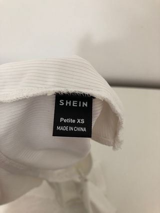 Top de la marca SHEIN en color blanco y talla Petite XS. Fabricado en China. - Diseño de canalé.