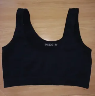 Top seamless de canalé, color negro. Talla M. 70% poliamida 20% poliéster 10% elastano. Marca Inside. NUEVO
