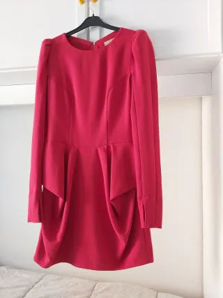 EXCEPCIONAL Vestido de la marca BDBA en color Rojo. - Maravilloso Diseño con Mangas Largas con apertura en los puños. - Cuello caja, detalle de mini hombreritas detalle rizo hombros que realza la parte de arriba sin duda . - Parte de abajo con un corte muy diferente a todo: hace un ligero volumen antero-lateral precioso. - Y la Espalda es la Joya de la Corona del vestido, es Llamativa al máximo, hace un Rombo de otro tejido con una cremallera que desliza con calidad TOP , el vestido es calidad Superior en Todo. - Además es muy Cómodo pq ligeramente algo de elastano lleva el tejido y hace que te puedas mover perfectamente .