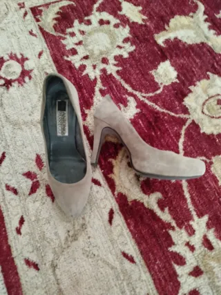 Elegantes zapatos de tacón de la marca Antonio Parriego. - Color topo. - Tacón alto con plataforma