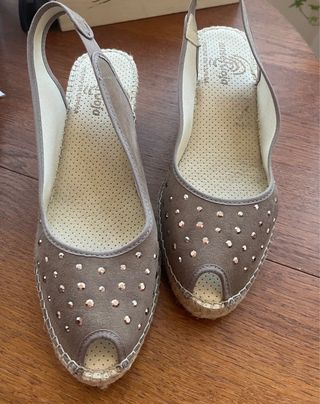 Alpargatas de la marca anserioja en color topo, talla 41. Un calzado cómodo y con estilo. - Diseño con tachuelas. - Cierre de tira al talón. - Suela de esparto.