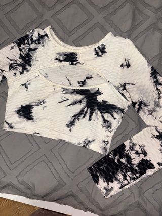 Top estilo tie dye de manga larga. Moderno. Marca New Yorker (FB Sister). Talla M. El estampado es fluido y con varios colores: blanco, morado, azul, negro... Con ondas y líneas. Si necesitas medidas no dudes en pedírmelas 😊