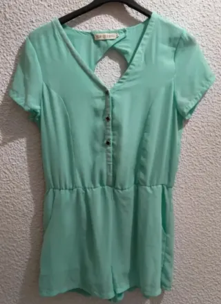 Mono corto de la marca TOP QUEENS. - Diseño con escote en pico. - Detalle de botones en la parte frontal. - Abertura en la espalda. - Cintura elástica. - Bolsillos laterales. Estado : Como Nuevo. Precio : 5.99€ Se recoge en mano : -Madrid (a concretar día lugar y hora.)Por compras minimas. -Toledo unicamente en el Pueblo La Guardia. Hago envíos a través de Wallapop.
