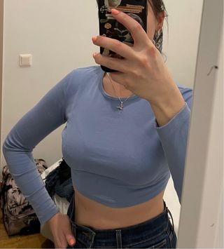 Top azul claro crop manga larga