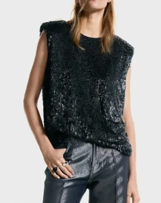 Top Mango Negro Lentejuelas
