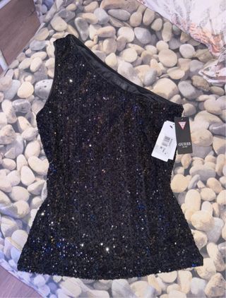 Top Guess Negro Lentejuelas Asimétrico