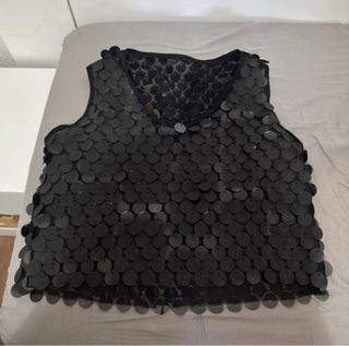Top negro hecho a mano, cubierto de lentejuelas circulares. - Diseño sin mangas.