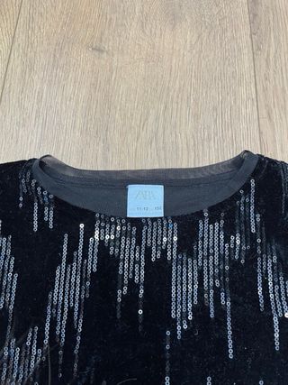 Top de Zara Kids con un diseño llamativo. Utilizado solamente una vez - Forro de tu por debajo - Tejido de terciopelo. - Adornado con lentejuelas. - Color negro.