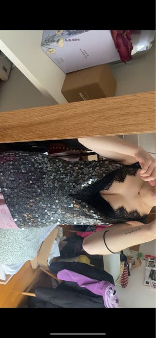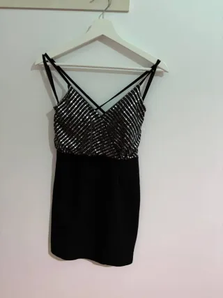Vestido corto lentejuelas negro y plata