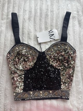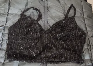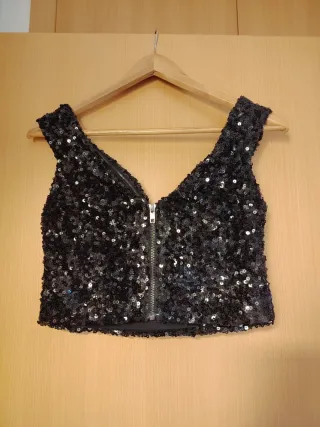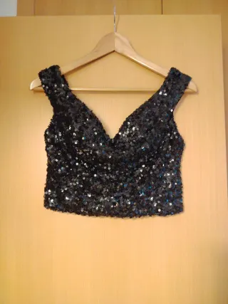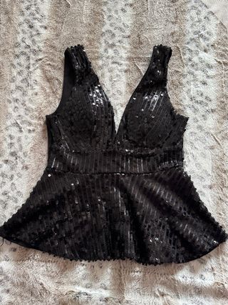Top lentejuelas negro de segunda mano