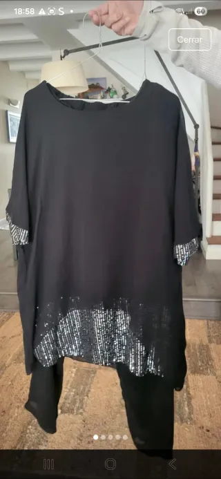 Traje pantalón negro lentejuelas