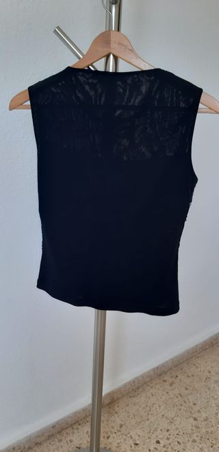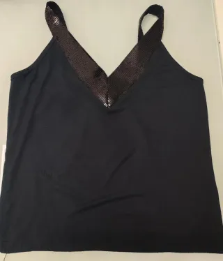 Top sin mangas. De lentejuelas. Nuevo. Color negro. Con transparencia en la parte del escote. Por detrás liso. Talla 38 (medida pecho 44cm). Muy elegante. ***SOLO HAGO ENVIOS*** #vestido #denim #vaquero #zara #etiqueta #estrenar #fiesta #formal #boda #midi #largo #mini #corto #pantalones #falda #blazer #chaqueta #traje #americana #primark #lefties #zapatos #top #perlas #volantes #strass #brillo #brillante #blusa #encaje #lentejuelas #bolso
