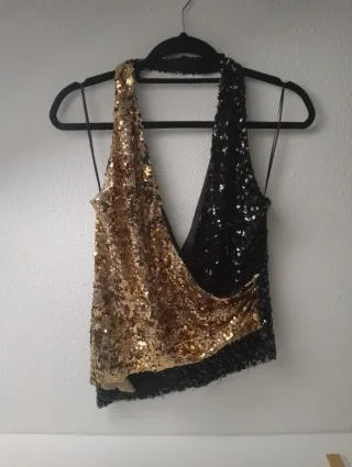 Top lentejuelas halter Zara negro-dorado
