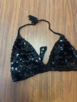 Top de lentejuelas de Subdued. Tengo la falda a juego en mí perfil,las dos cosas 25 euros. - Tejido con lentejuelas brillantes. - Cuello Halter. - Corte moderno. Solo se ha puesto un día.
