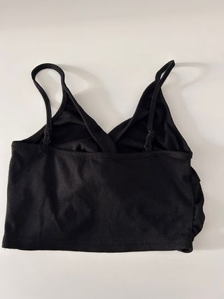 Top de color negro con un diseño moderno y favorecedor. - Tirantes finos y ajustables. - Espalda con tirantes cruzados. - Tejido suave y elástico.