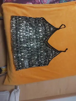 Top Mango lentejuelas negro y plateado Talla XS