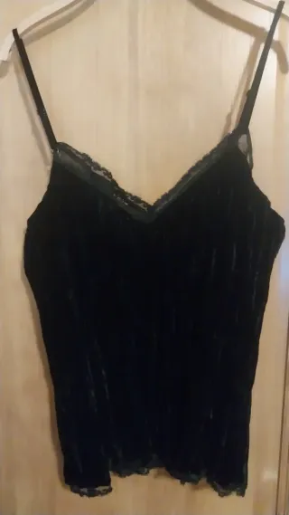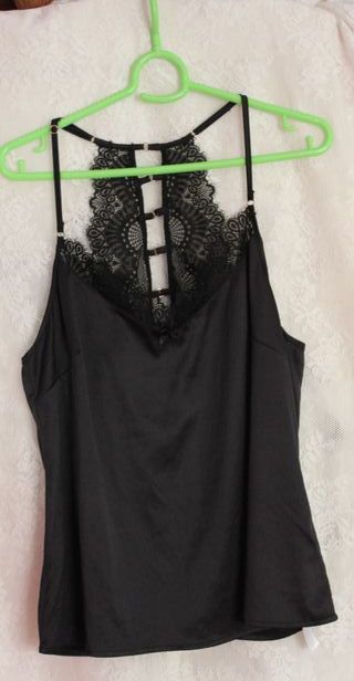 - Muy buenas condiciones. - Poco uso - Tirantes finos. - Escote en V con adorno de encaje. - Tejido suave y ligero.