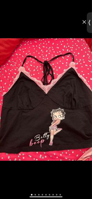 Precioso top con estampado de Betty Boop. - Diseño con tirantes. - Detalle de encaje en el escote. - Estampado frontal de Betty Boop.