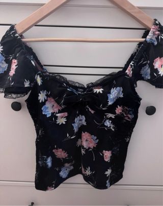 Top negro con estampado floral