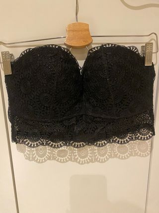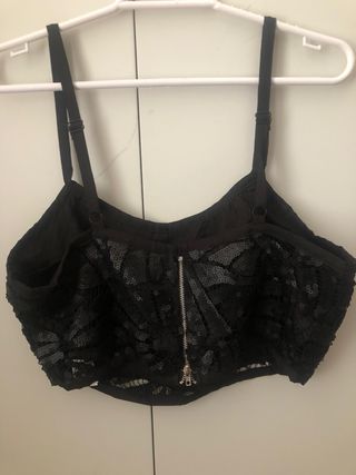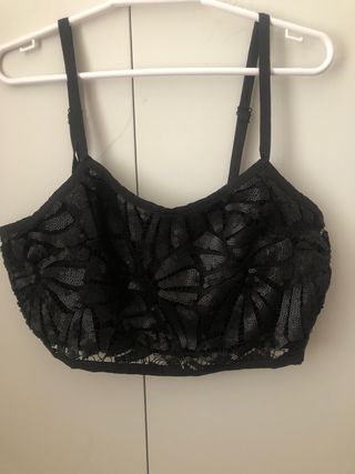 Elegante top de encaje negro con tirantes. Talle en etiqueta es L pero es más apto a M