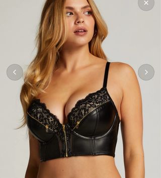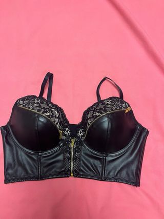 Este top de Hunkemöller combina un diseño atrevido con detalles elegantes. - Acabado en imitación piel. - Encaje floral en la parte superior. - Cremallera frontal dorada. - Detalle de malla. Tanto como lencería o un evento especial.