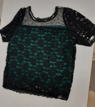 Top verde con encaje negro talla L