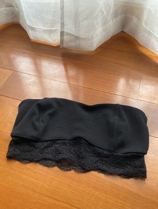 Top lencero de Zara. Negro, con encajes arriba y vuelo en la parte de abajo. Tirantes ajustables. Con forro interior. Está nuevo, sin estrenar.