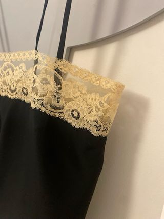 precioso top lencero en color champagne con encaje negro. terciopelo fino Velvet talla m Bershka impecable