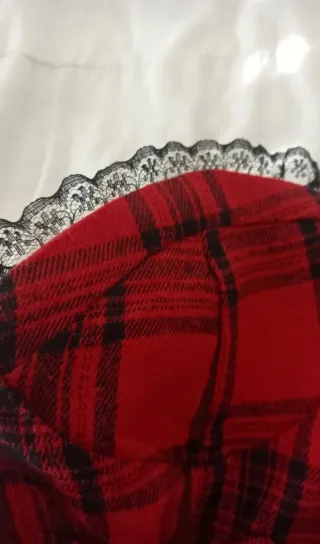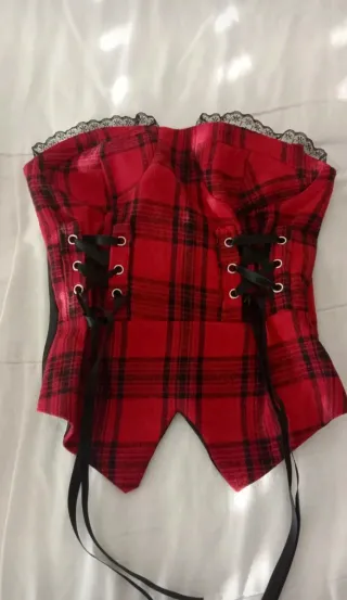 ‼️PRECIO NEGOCIABLE‼️ Top estilo corsé con: • Estampado de tartán en rojo y negro • Cremallera lateral • Cordones frontales para un ajuste personalizado • Encaje en el borde superior No pone talla por lo que podría ser S o XS.