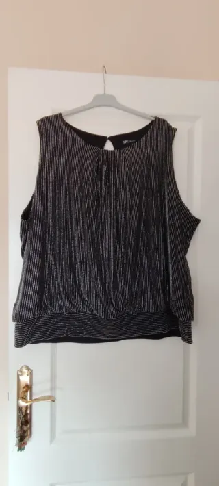 Elegante top de fiesta con un diseño brillante y fruncido. - Tejido con acabado metalizado. - Diseño sin mangas. - Fruncido lateral para un ajuste favorecedor. Me costo 10€ y lo vendo mucho mas barato porque la talla es muy grande para mi