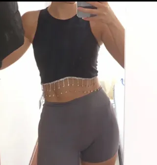 Crop top negro sin mangas, de pedrería brillante, tela suave. Ideal para fiesta Con etiqueta, talla S Más ropa y accesorios en mi perfil, mando lotes