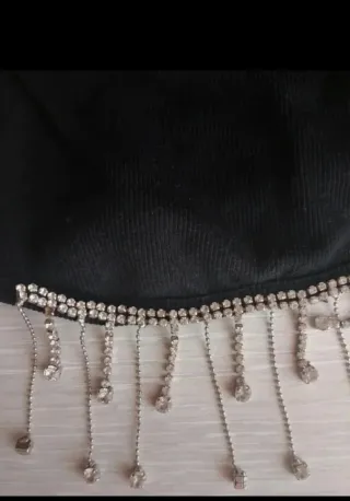 Conjunto negro con detalles de brillantes, ideal para salir de noche, fiestas o eventos especiales. Incluye un top corto negro con tirantes anchos y flecos de brillantes en el bajo, y una falda ajustada con detalle lateral de brillantes en forma de cremallera decorativa. Es de la marca Shein, talla m, en perfecto estado usado usado una vez. El material es suave, elástico y se adapta muy bien al cuerpo. Es un conjunto elegante y moderno que resalta la figura y brilla con cada movimiento, perfecto para una noche especial o una cena con estilo. Se puede vender junto o por separado, pregunte sin compromiso, precio negociable ☺️