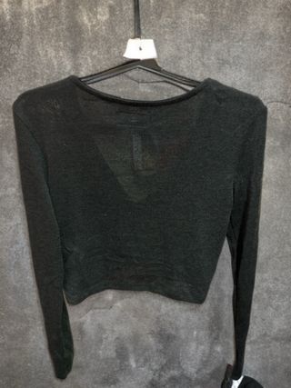 Top crop negro con diseño cruzado. De manga larga y corte de cuello barco. - Tejido acanalado. - Mangas largas. - Escote Bardot. Sin usar, en perfectas condiciones 😊