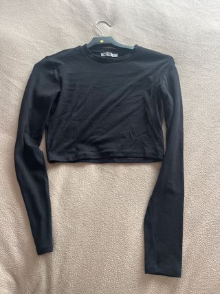 Crop top negro manga larga