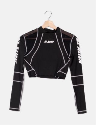 HAGO ENVÍOS A TODA CANARIAS!! • Venta en persona en Gran Canaria. Puntos de recogida: Santa Maria de Guia. Posibilidad de CC Las Arenas si me cuadra. Top de manga larga con un diseño moderno y detalles llamativos. - Tejido principal negro. - Transparencias de malla en los hombros. - Costuras decorativas en contraste. - Logo de KL Alien en el pecho. - Estampado de logo en las mangas. - Talla M a estrenar, en perfecto estado.
