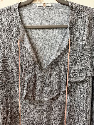 Blusa gris con topos negros y volantes