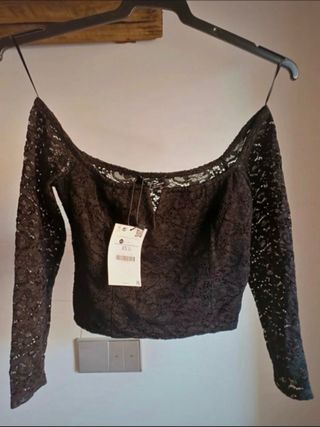 Top corto Zara negro con ganchos