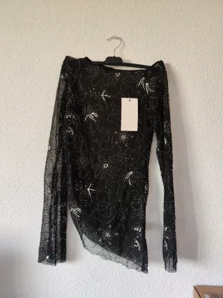 Zara Top Negro XS con Pedrería