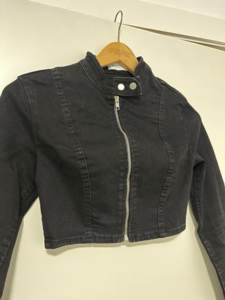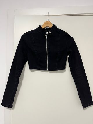 Cazadora vaquera crop top negra