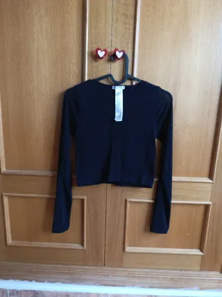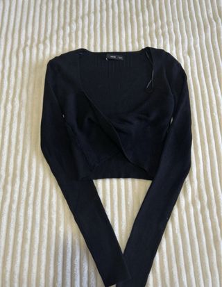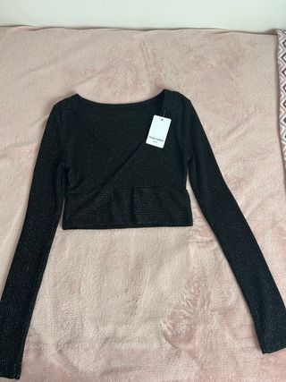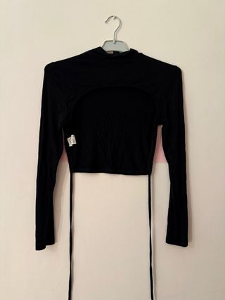 Top de Stradivarius con manga larga y un diseño frontal con abertura. - Manga larga. - Diseño con abertura frontal. - Nuevo sin usar.