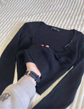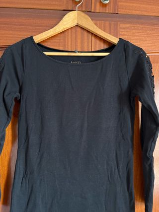 Top Bershka negro manga larga talla S