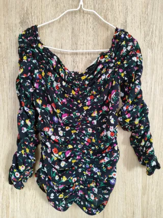 Top fruncido flores negro · Zara · XS/34 (nuevo)
