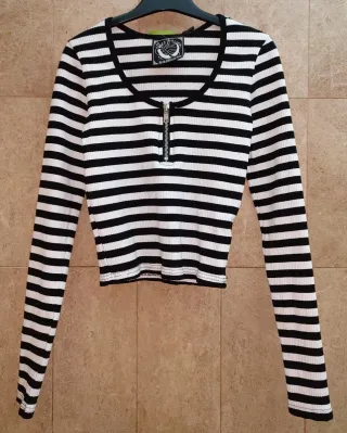 Top de rayas negras y blancas con manga larga y corte crop. - Diseño de rayas horizontales. - Manga larga. - Corte crop.