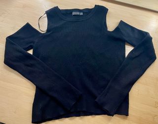 Top de manga larga con diseño de hombros descubiertos. - Tejido de canalé. - Corte ajustado.