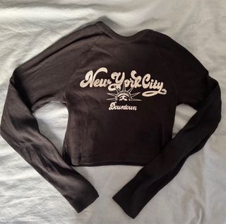 Camiseta negra de manga larga con estampado New York City Downtown y la Estatua de la Libertad. - Diseño de cuello redondo. - Tejido acanalado. - Corte crop top. 4€ cada una