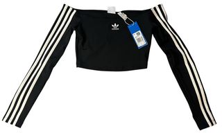 Top Adidas negro de manga larga con diseño off-shoulder.