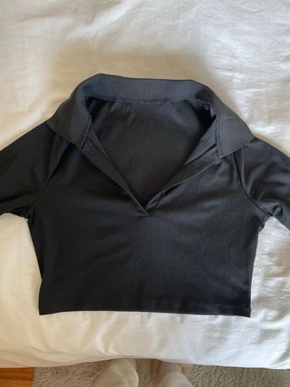 Top de manga larga sin usar, en perfecto estado. Es bastante escotado y tiene una abertura en la mitad del pecho.