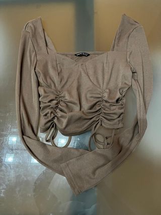 Como nuevo .Top acanalado con manga larga. - Diseño fruncido en la parte delantera. - Cordón ajustable en el centro. - Tejido elástico y acanalado.